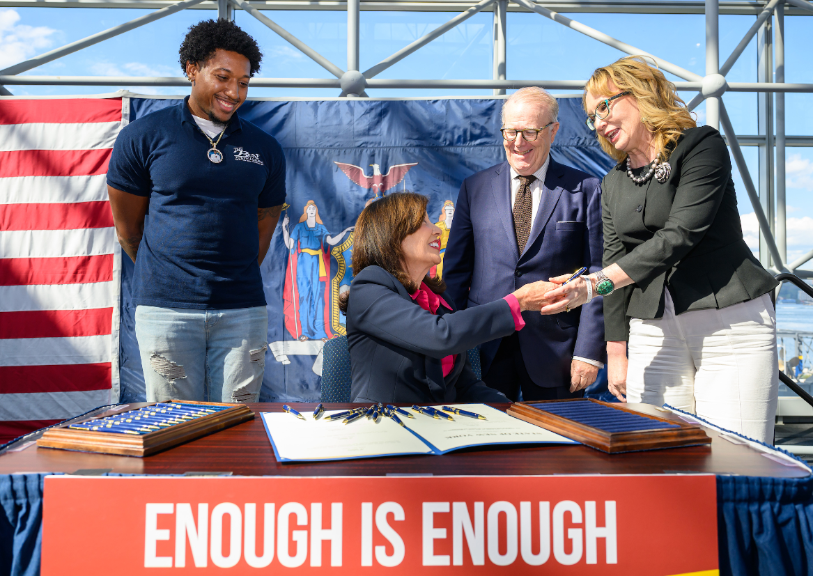 “Gun violence is an epidemic that is tearing our country apart. Thoughts and prayers wonโt fix this, but taking strong action will,โ Hochul said during the Oct. 9 bill signing. โThatโs why in New York, we are taking bold steps to protect the people of our state.”